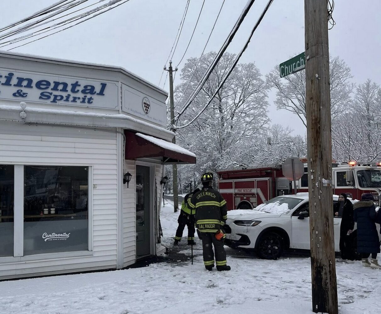 The Greenwich Fire Dept responded the morning of Sunday, Jan 18 after a car struck a building due to icy and snowy conditions. The crash happened at the corner of Church and William Street.
