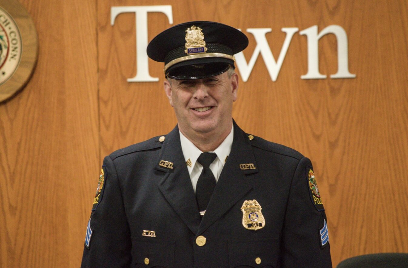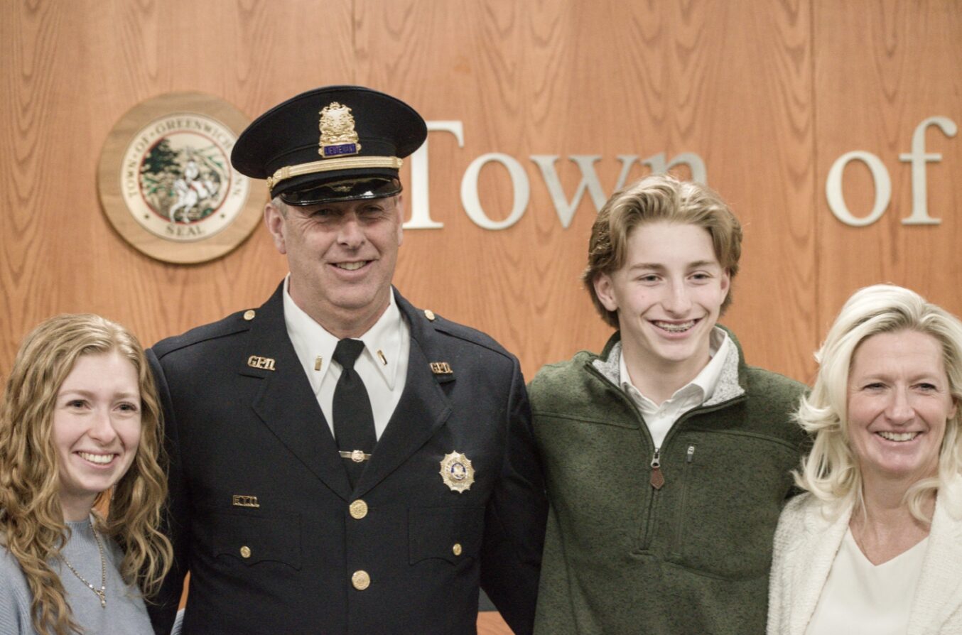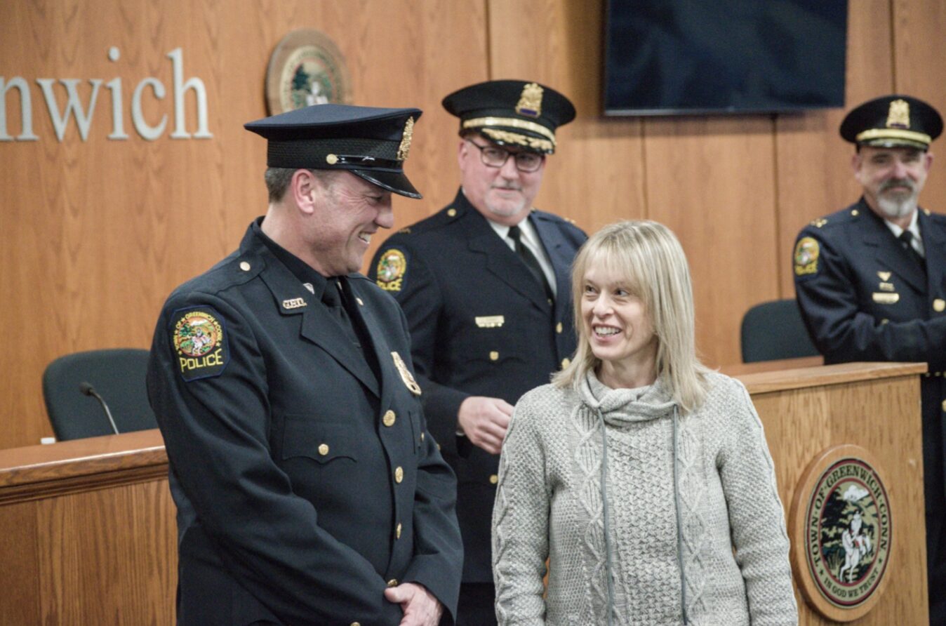 The ceremony also included the swearing-in of Special Officer Carlos Franco, who recently retired as a detective after more than 28 years of service to the Greenwich community. Many in the community are familiar with Franco from his 11 years as school resource officer at Greenwich High School.