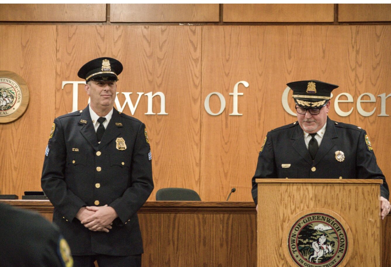 The Greenwich Police Department formally recognized the achievements and dedication of two of its own during a promotional ceremony that celebrated careers defined by service, sacrifice and commitment to the community.