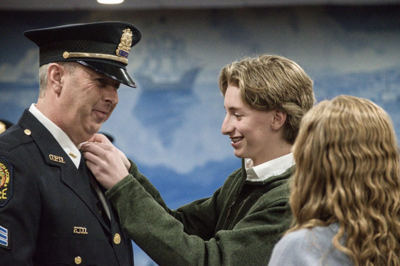 Stook was joined on stage by his wife, Mary Anne, and his children, Heidi and CJ. Mary Anne pinned his new lieutenant’s badge, followed by his children, a moment met with sustained applause from the audience. Chief Heavey then placed the lieutenant’s hat on Stook’s head, formally signifying his new rank.