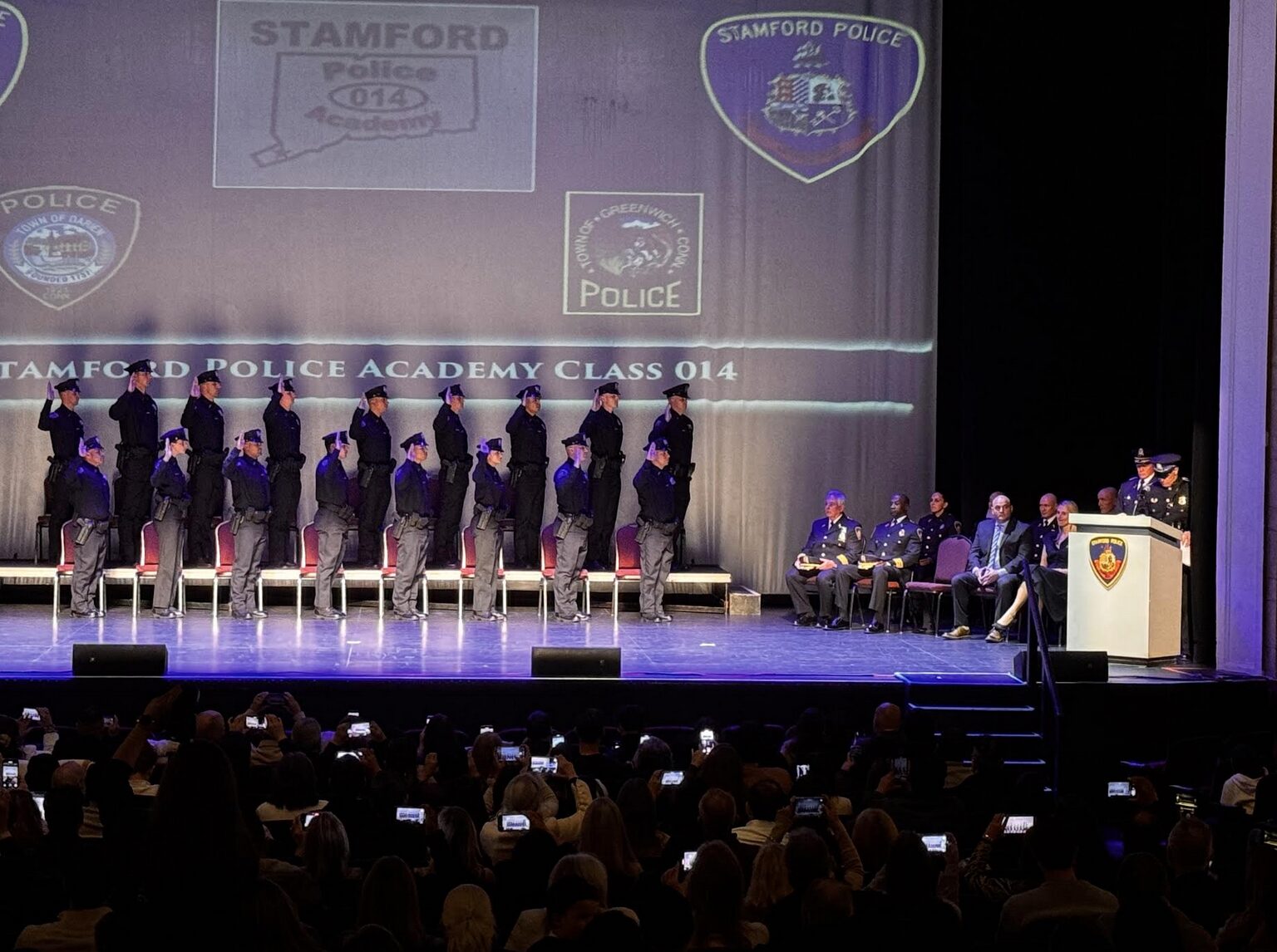 Department officials from both Stamford and Greenwich attended the ceremony, along with families, instructors, and community members. The graduating cadets were honored individually before taking the official oath marking the completion of their training.