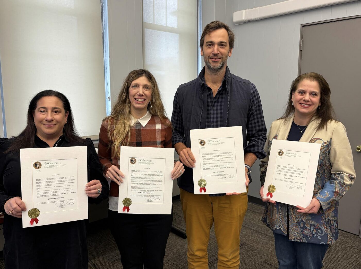 In addition, First Selectman Fred Camillo sent over hand-signed proclamations for all four honorees, celebrating their time as Board members. He proclaimed: