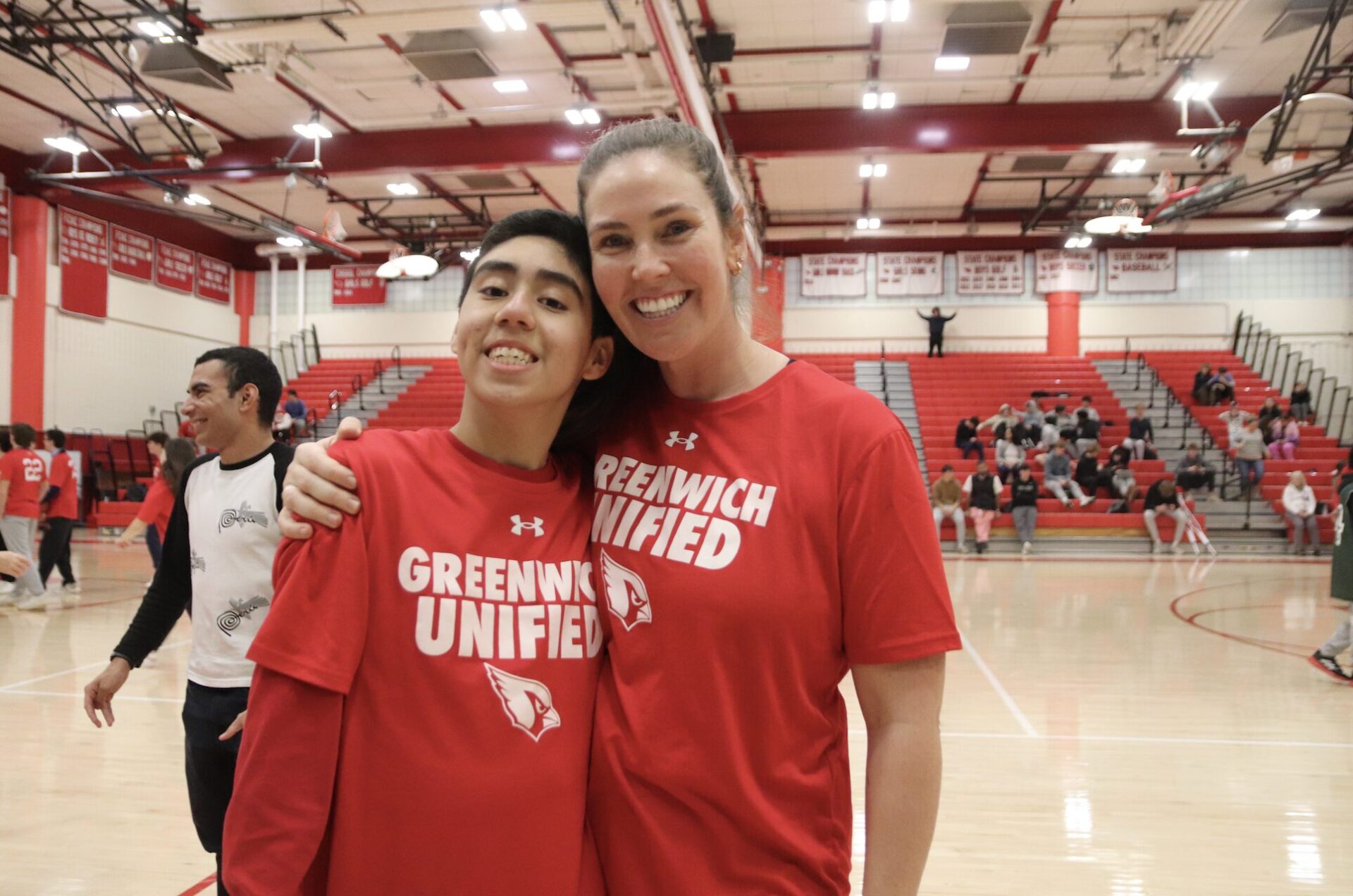 Dawn Stevens from the GHS athletic department and Eva Barber at the Unified Sports event. Dec 16, 2024 Photo: Leslie Yager