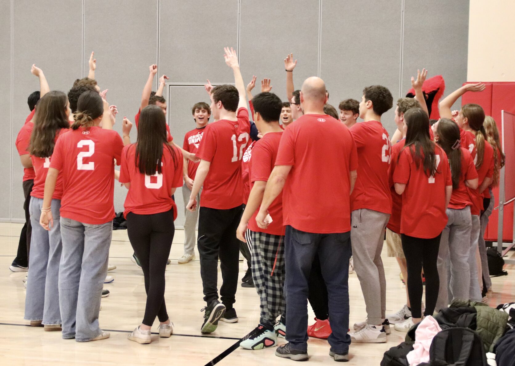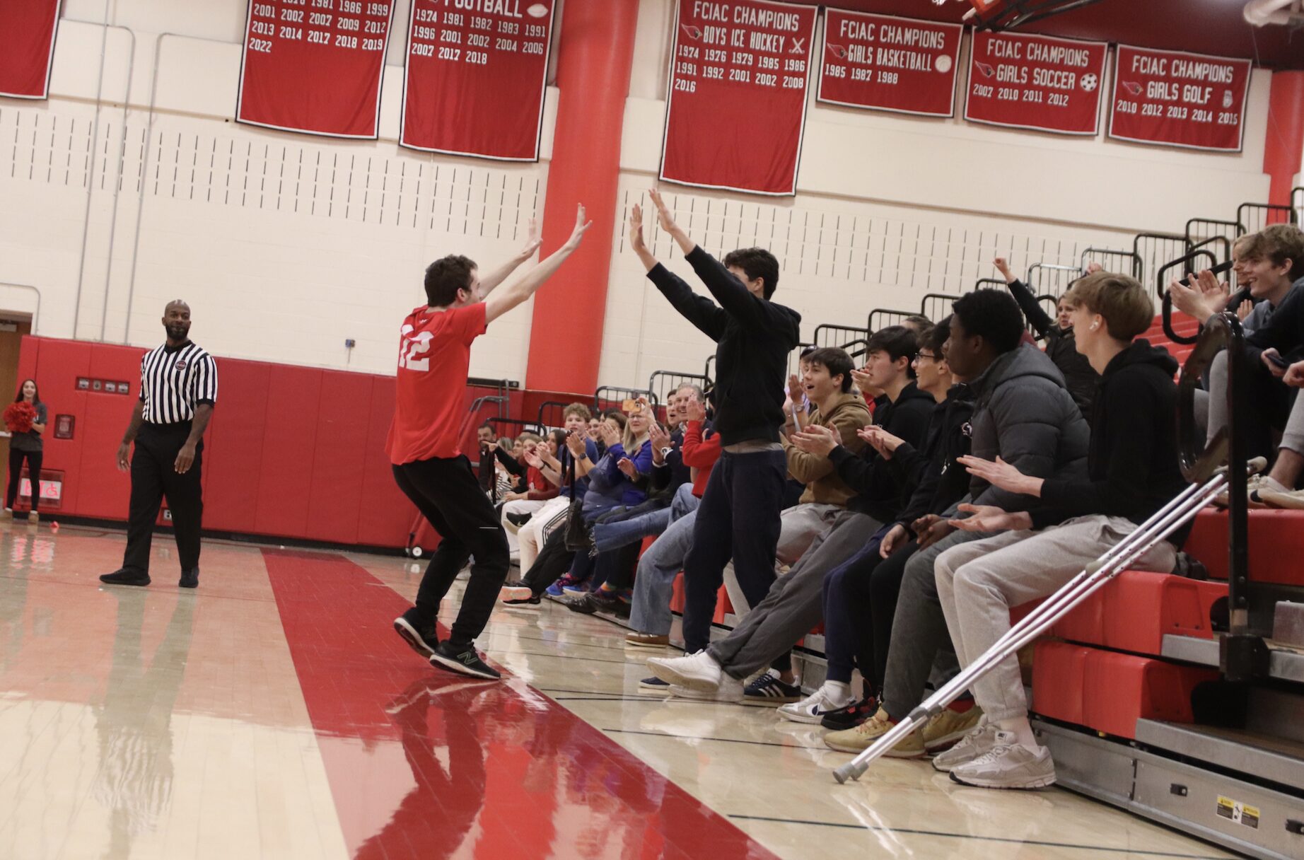 The energy was evident at Monday’s game against Norwalk, starting with warmups, continuing through a group charge through a red paper banner, and throughout the competition. Fans in the bleachers were equally enthusiastic.