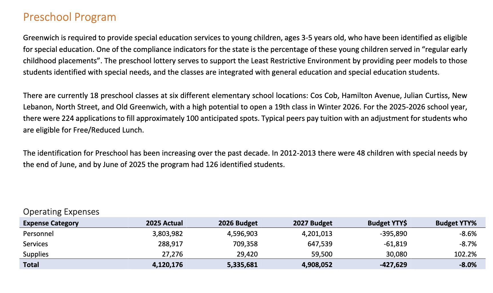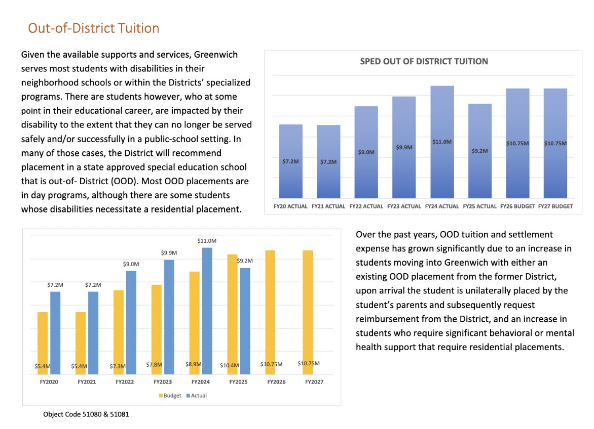She said the issue last year was whether Greenwich’s finance board, the BET, would let the school board count the $2.5 million left over due to ‘underspending’ – a large part of which Jones said was due to the great work special education staff in reducing outplacement.