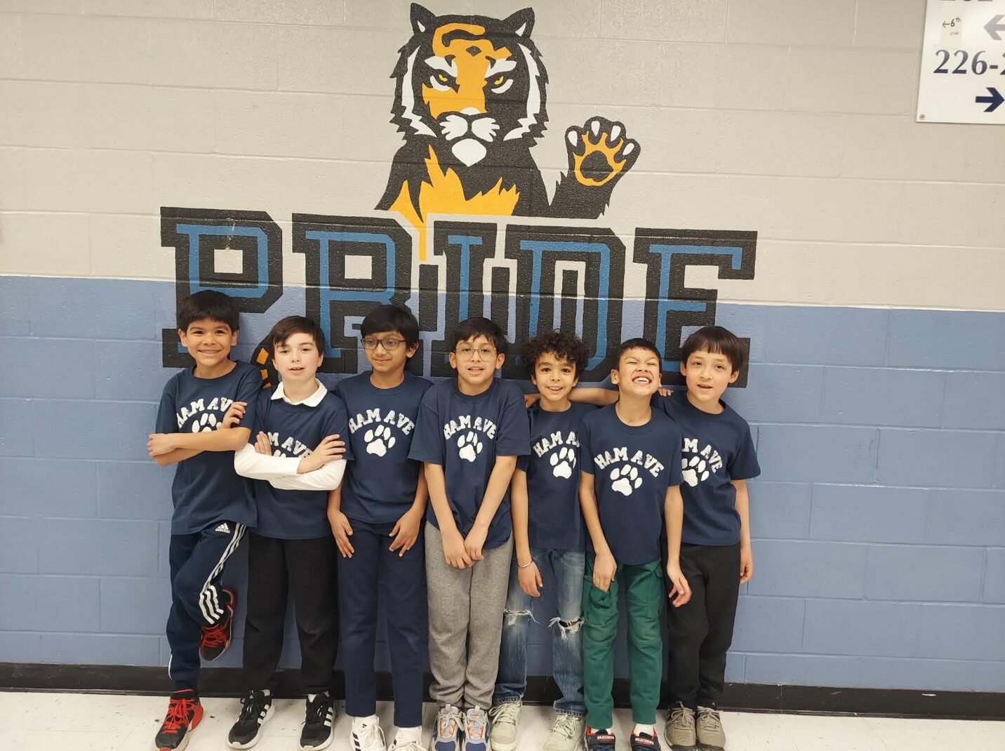 The team was also this year’s recipient of the OMER award. The OMER, named for the Odyssey of the Mind mascot, is given to the team that exemplifies outstanding sportsmanship, exemplary behavior, or exceptional talent. The Hamilton Avenue team received the award in recognition of their teamwork and creativity in overcoming a set malfunction during their performance. Team members include: Luka Jai Puac, Dhanvi Madishetti, Victor Molleturo, Bodhi Puac, Jackson Rossitter, Devin Clermont, and Noah Blake. The team was coached by teacher, Mrs. Cathy Byrne.