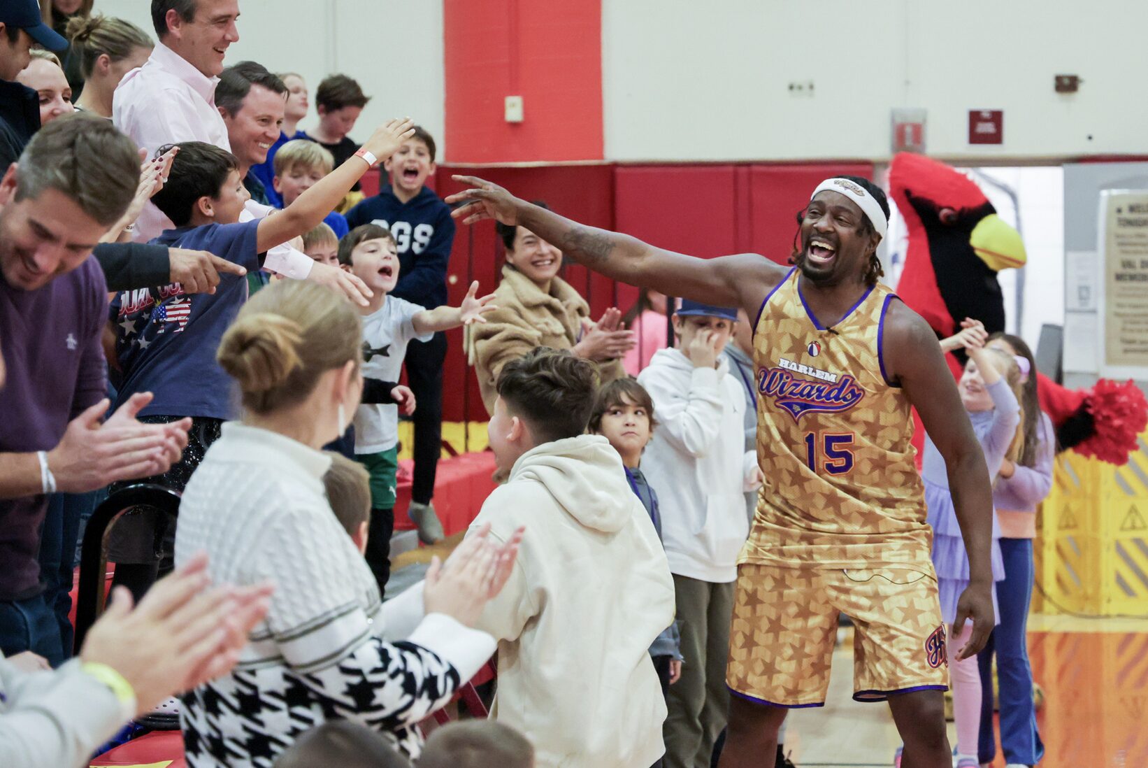 During the incredible night of basketball tricks, hoops, and alley-oops, the Harlem Wizards faced off against Greenwich Public Schools teachers, school resource officer Chris Wallace and local elected officials including First Selectman Fred Camillo and BET member elect Joe Kelly.